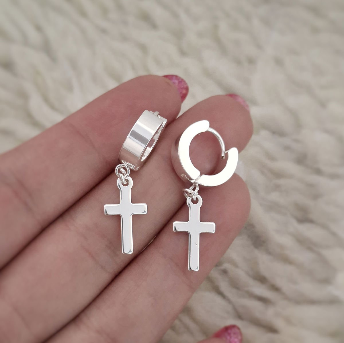 Argollitas gruesas Cruz - Ac. blanco