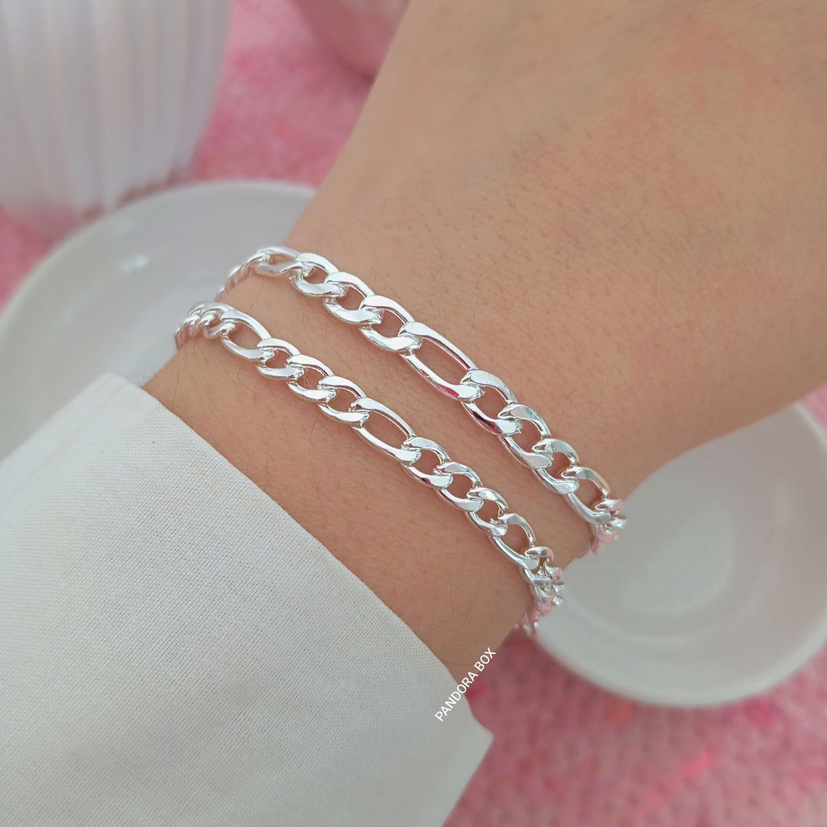Pulsera Figaro blanco - 19cm