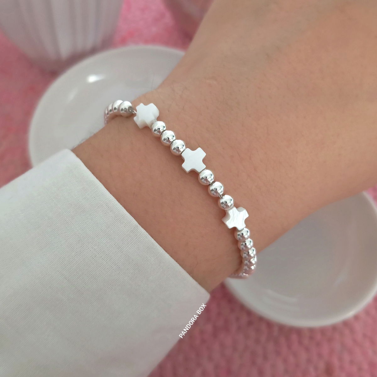 Pulsera Cruz Nacar blanco