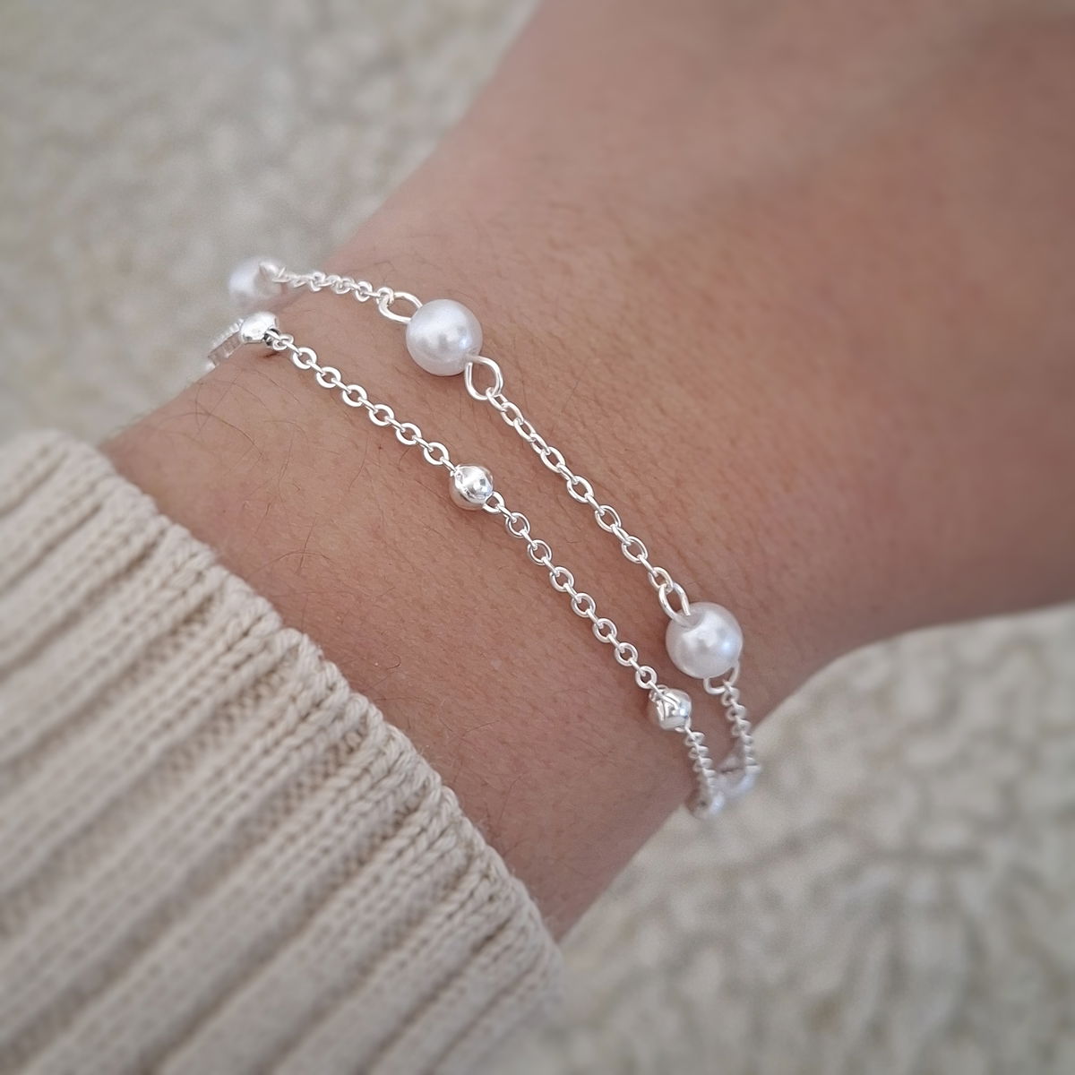 Pulsera doble Malibu perla - Ac. Blanco