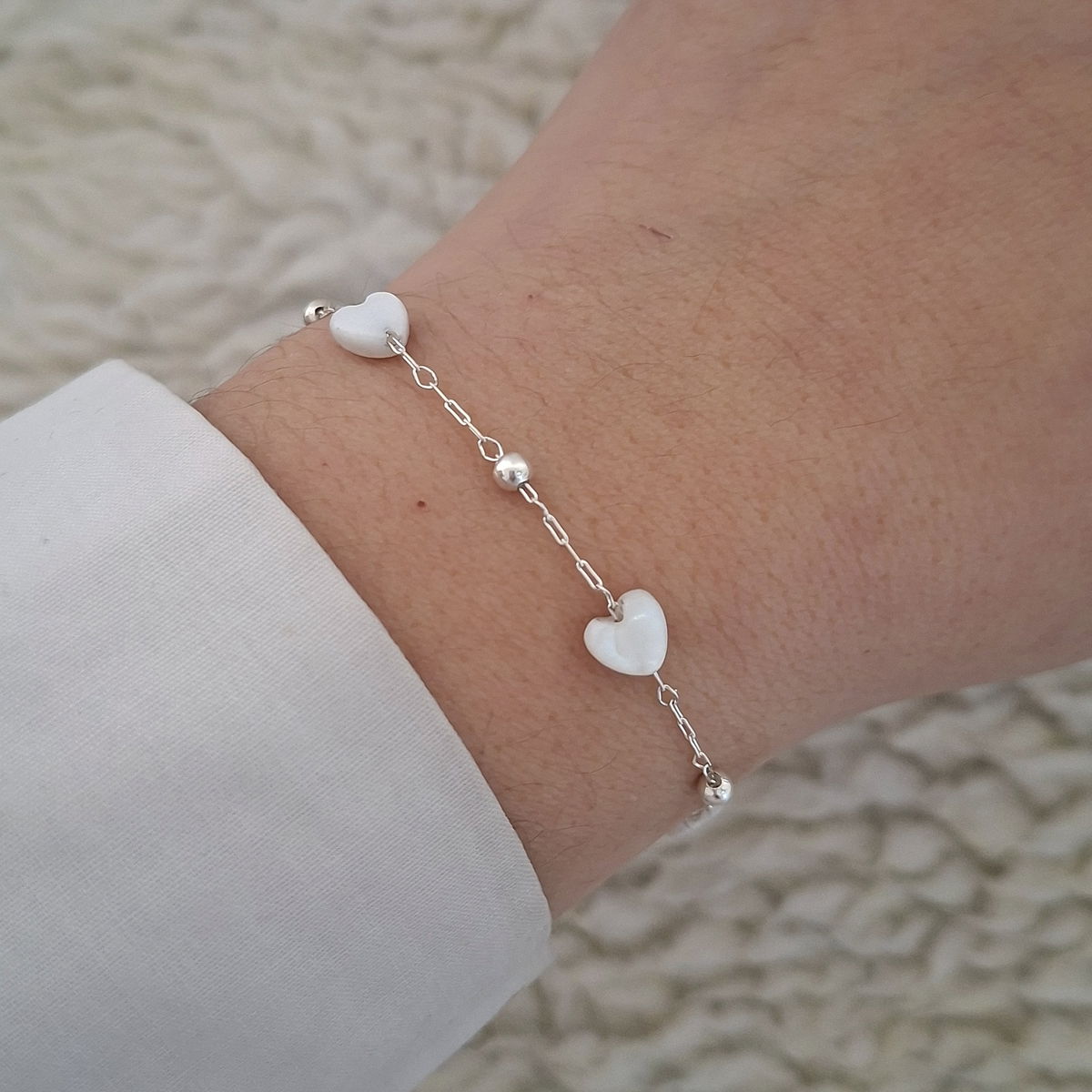 Pulseras Corazón Nacar - Ac. Blanco