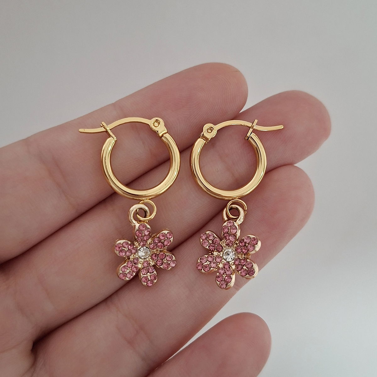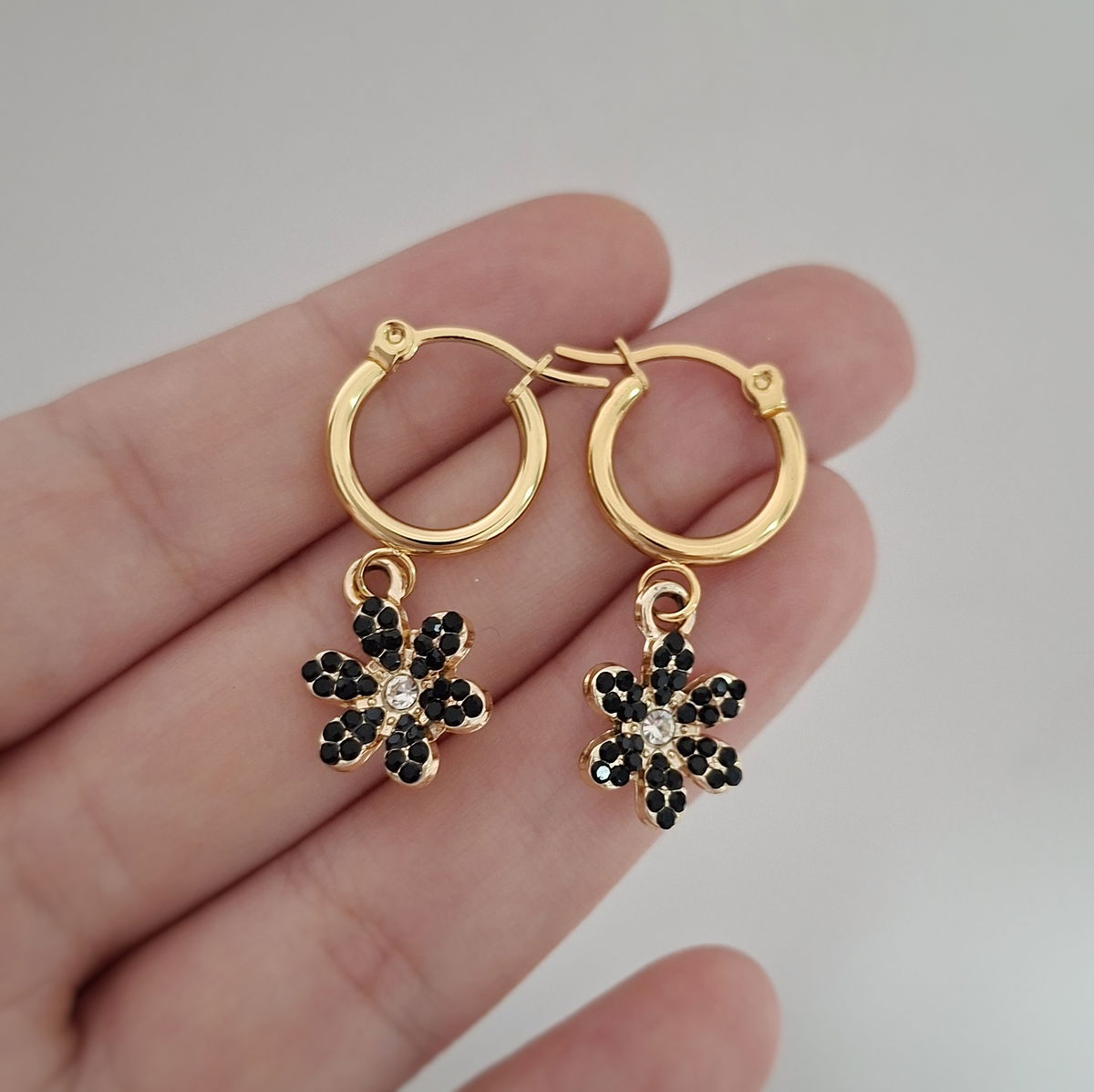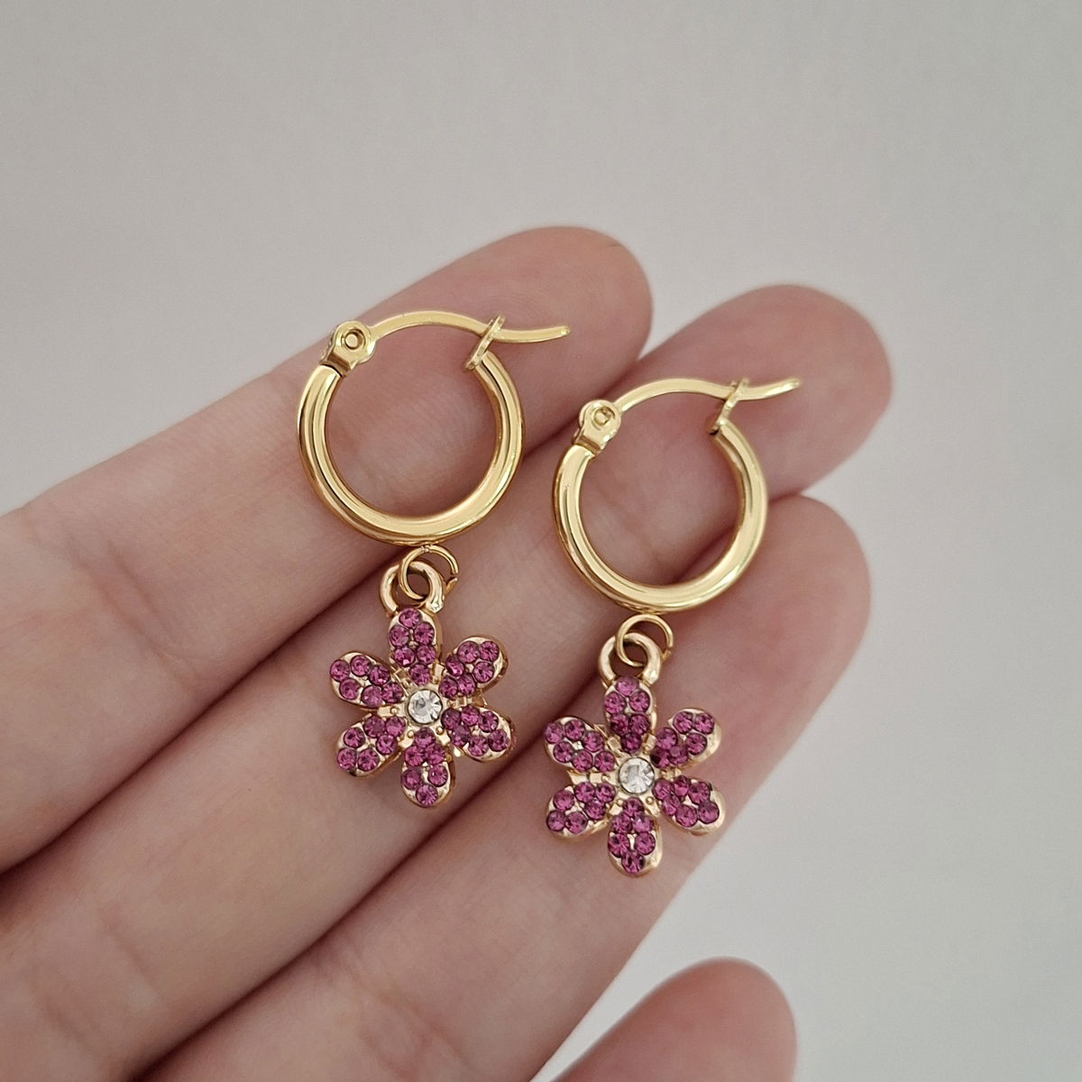 Argollas Flor strass - Dorado