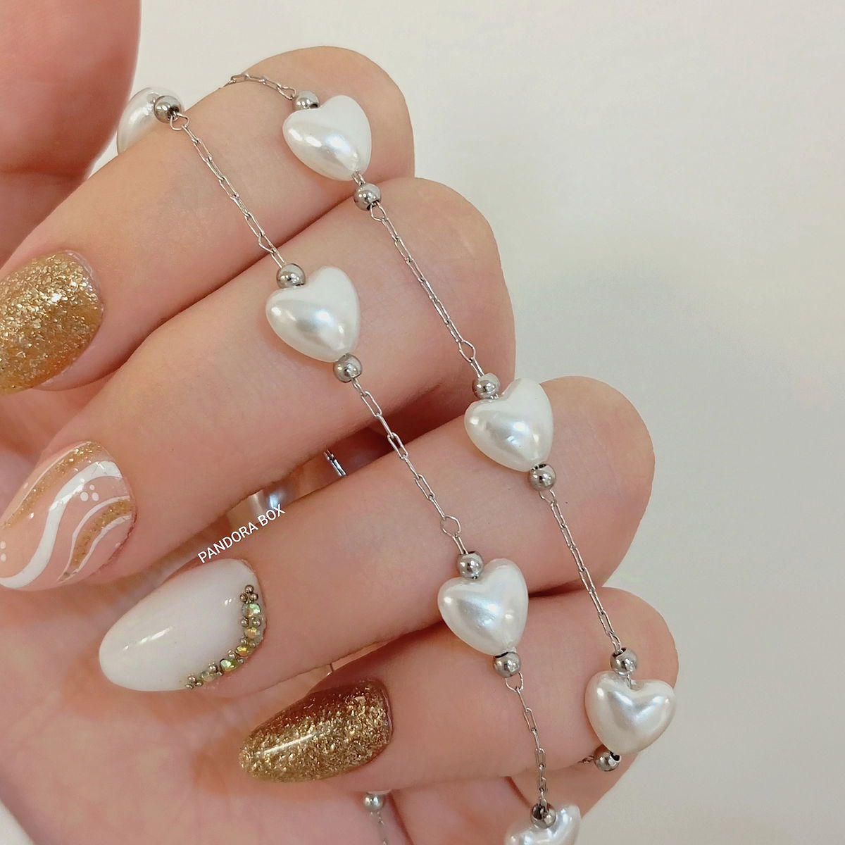 Cadena perlas corazón - 50cm