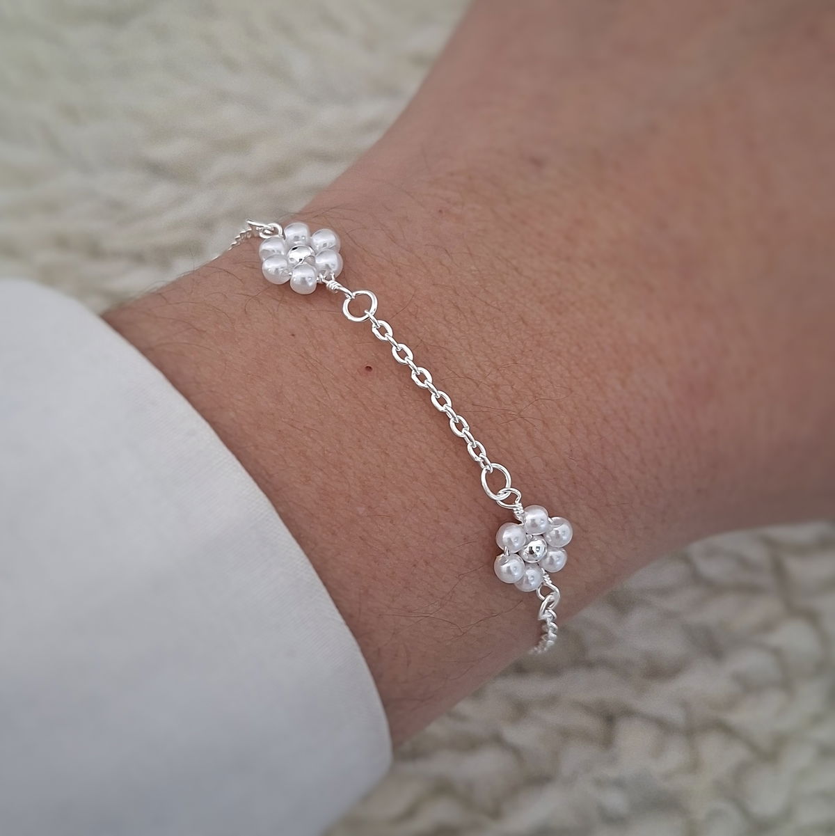 Pulsera Flor perla - Ac. Blanco