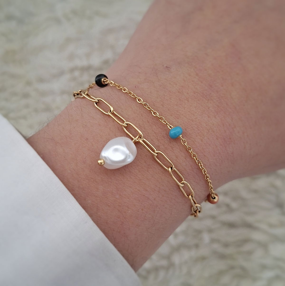 Pulsera doble perlin - Dorado